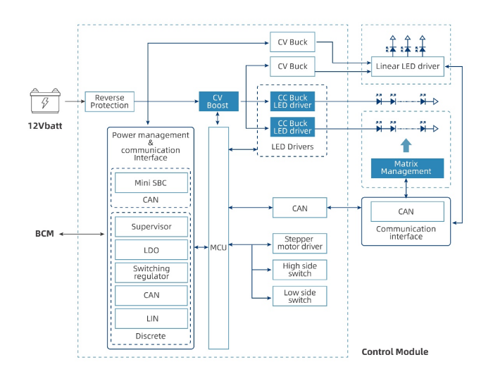 精准像素级LED亮灭控制,满足动态ADB前灯需求