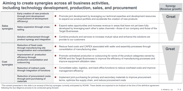 罗姆在官方文件中明确列出了预计通过整合实现的两大协同效应: