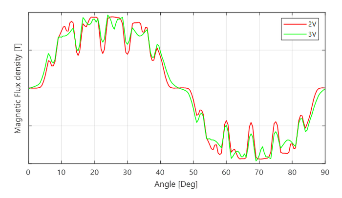 “三V型”的磁钢布局相比于其他构型的电磁及结构设计都更加复杂,需要综合考虑电磁性能、NVH表现及转速和强度的影响,但是这种多层结构可以更好地利用磁阻转矩,也有更好的磁场波形。