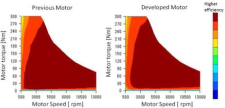 增速降扭是普锐斯和雅阁的通用手段,更小的转矩意味着更小的电机尺寸,进而使得电机的功率密度有所上升,所带来的代价是必须要设计更高的转子强度以及更有效的冷却手段来保证电机在高速下稳定运行。