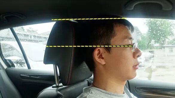 在调整头枕时,我们应将头枕高度调整到与头部 平行或略高于头部,或者眼部、耳朵的上沿平行处或略高处,这样,当车辆受到剧烈撞击时,头枕能有效保护颈椎。