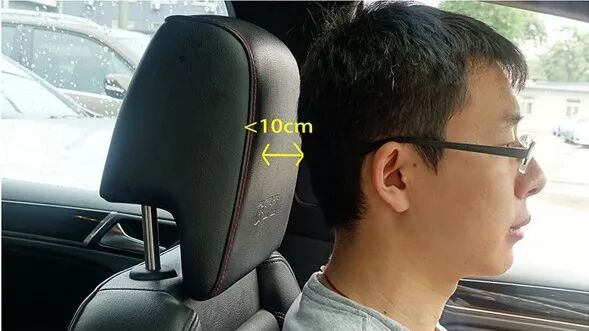 后脑与头枕的间距要尽可能小。当汽车受到撞 击时,后脑与头枕之间的距离越小,头枕对头颈 部起到的缓冲作用就越大。两者之间的安全间距应不超过 10 厘米,这样才能最大限度的保护驾驶者的头颈部安全。