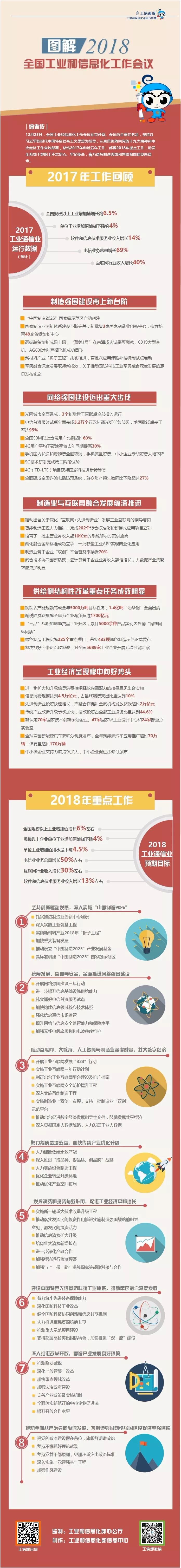 2018年全国工业和信息化工作会议今日在京开幕,会议总结了2017年工业和信息化工作情况,并对2018年重点工作进行了部署。小编带您一图速读.