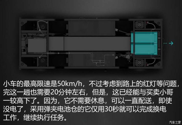 这段路距离1.7km,满载续航里程100km的无人物流小车一天可以跑20多个来回,起码能为将近100户居民递送食品,而它2.4立方米的大货箱不仅仅可以完成配送食品的任务。