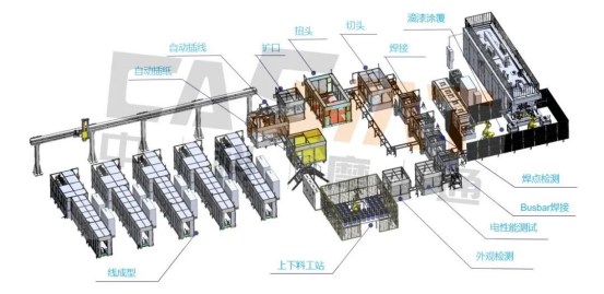 满足驱动电机Hairpin扁线定子自动柔性生产,带有全自动插线设备,自动插纸机设备,自动插线工艺,扭头工艺,切头设备,安规测试,EOL测试,CT90秒。
