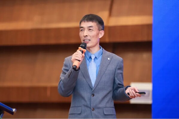 领导致辞环节,中之杰智能创始人&总裁苏玉学对松芝酷能的认可与信赖表示了诚挚的感谢。同时,表达了中之杰智能对此次合作的高度重视及未来业务布局规划。他从全球视角出发,全面审视汽车行业的整体发展趋势,进一步明确了智能制造转型对于松芝酷能乃至整个汽车空调行业的深远意义。他表示,中之杰智能将坚守"以客户为中心,为客户创造价值的"服务理念,将松芝酷能打造成行业数智化新标杆。