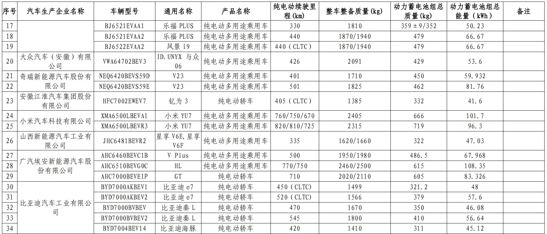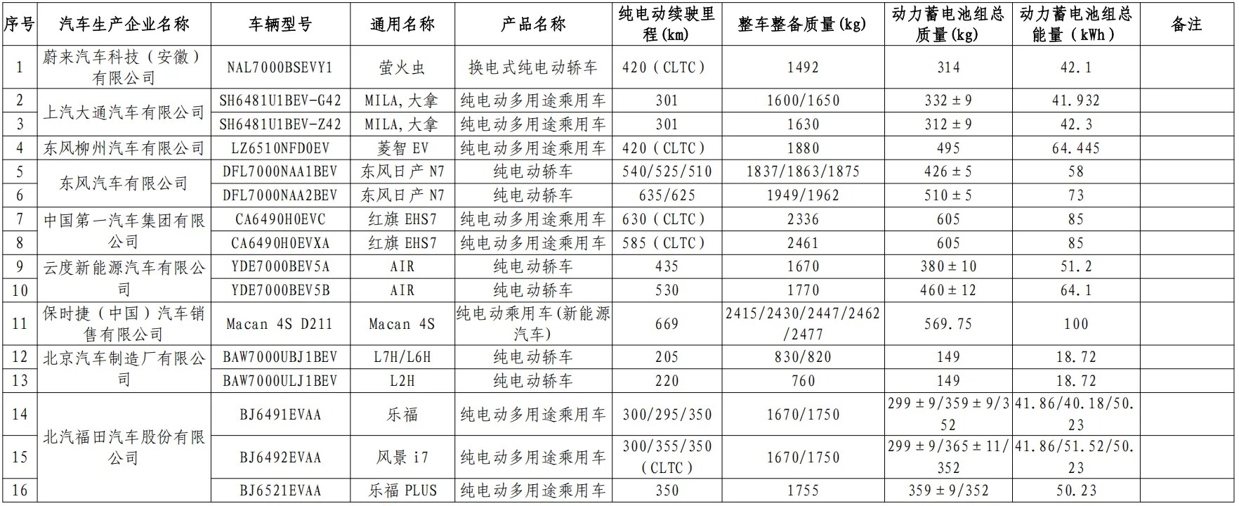 减免车辆购置税的新能源汽车车型目录(第十四批)纯电动汽车-乘用车车型如下: