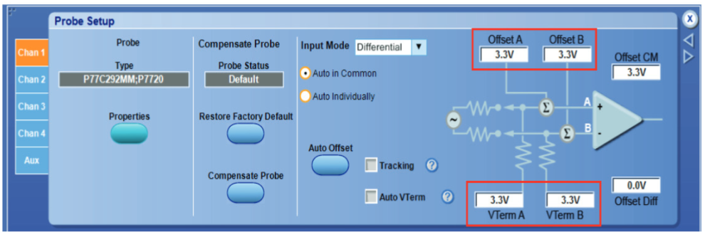 泰克示波器及探棒能够提供标准的3.3V端接电压,满足协会要求的一致性测试。在用户自定义模式下,还可以提供可调的端接电压,例如设置3.0V的端接电压,用于验证源端芯片在端接电压变化时的情况。