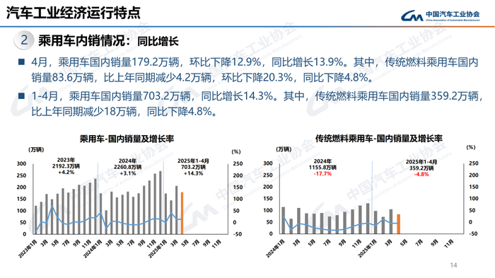 1-4月,汽车产销累计完成1017.5万辆和1006万辆,同比分别增长12.9%和10.8%。