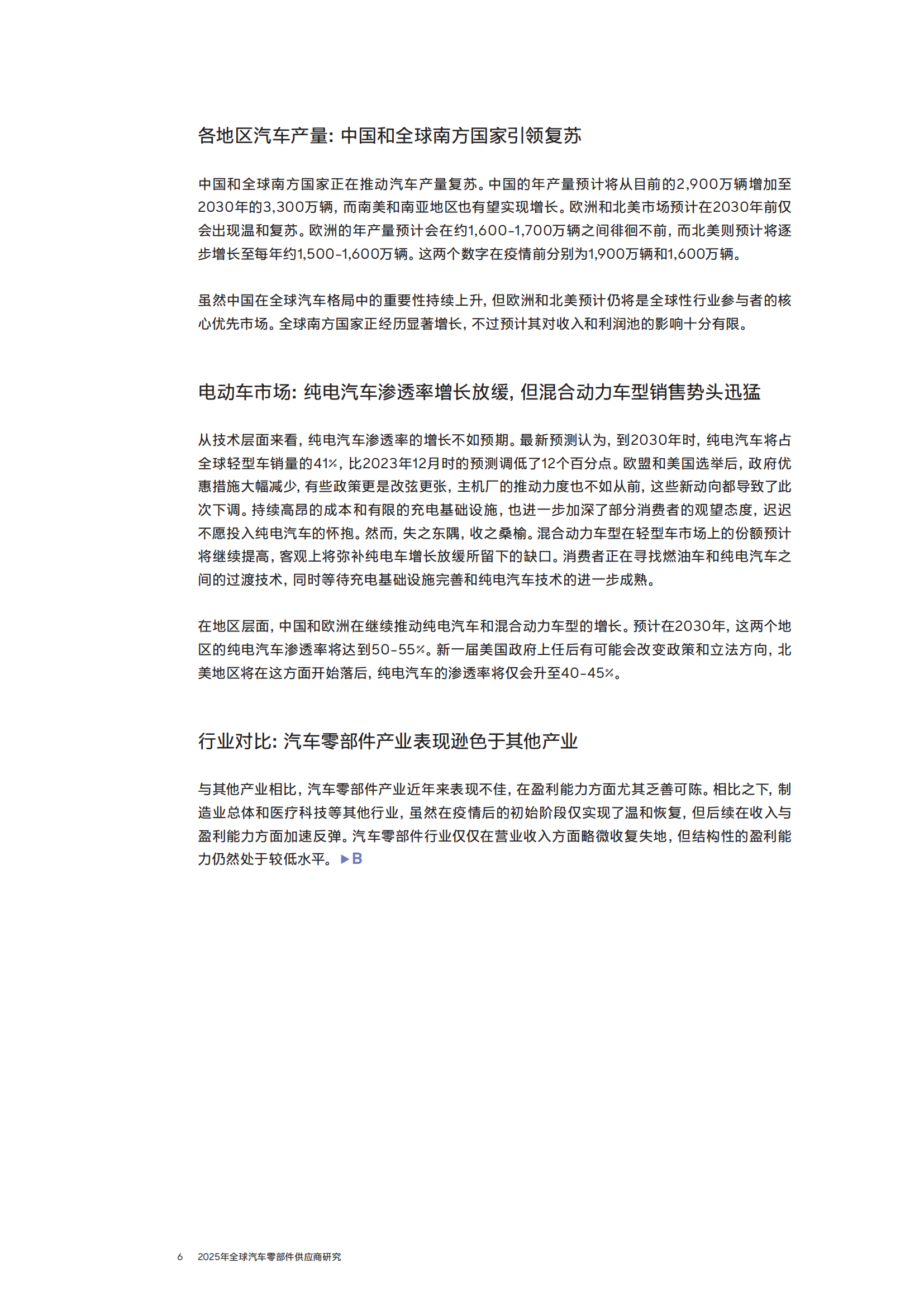 自2014年首次与拉扎德联合发布该系列报告以来,罗兰贝格始终致力于对该行业的长期跟踪与深度分析。在过往研究成果的基础上,罗兰贝格此次进一步更新了对整体市场形势的判断,旨在助力汽车零部件供应商精准洞察当前复杂多变的市场环境,并积极探寻突破困境、开拓未来的发展机遇。