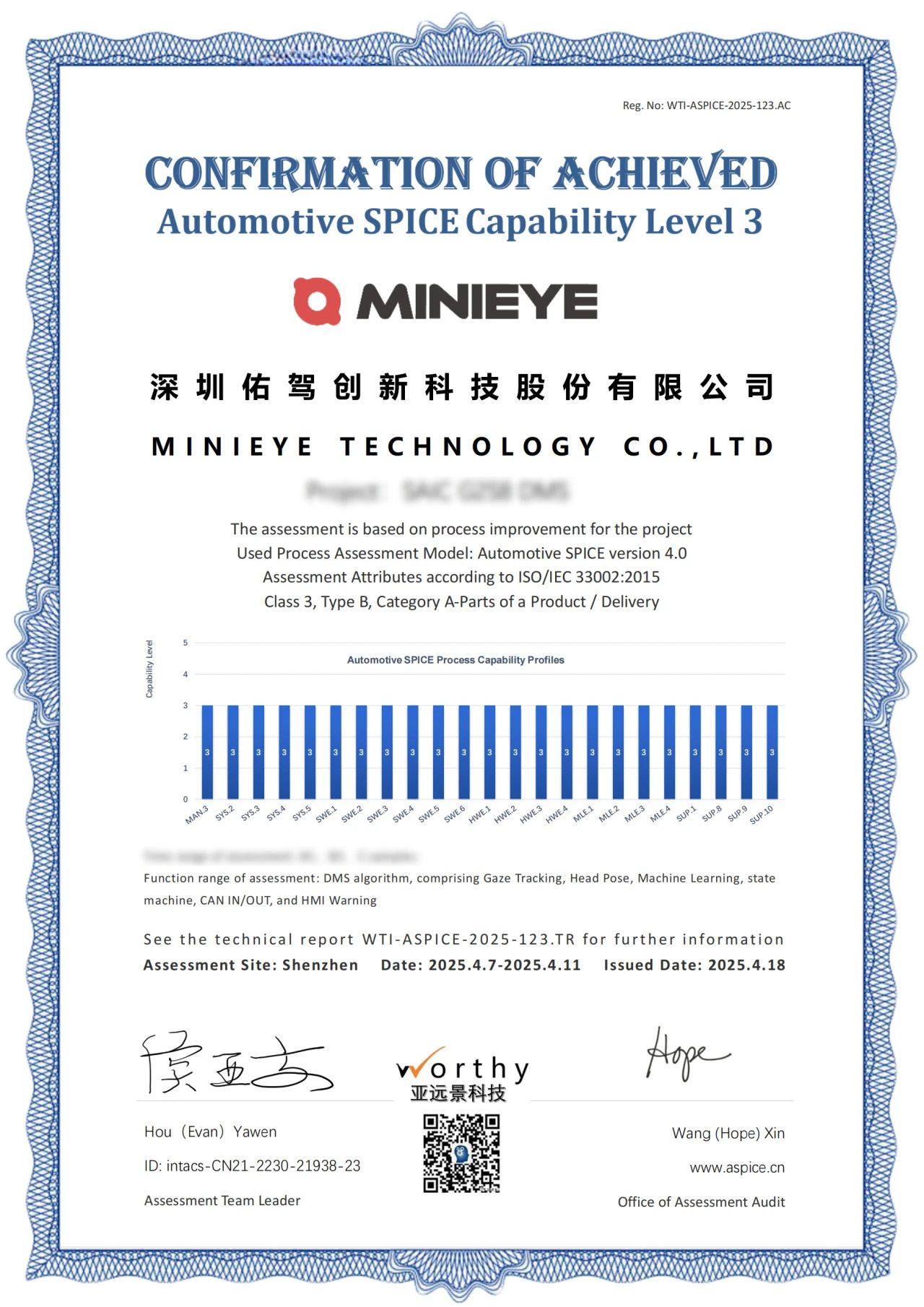 近日,深圳佑驾创新科技股份有限公司(2431.HK)宣布,其智能座舱DMS驾驶员监测项目成功通过Automotive SPICE(ASPICE)V4.0 CL3国际评估。CL3为目前国内汽车行业在ASPICE认证的最高评级,标志着佑驾创新智能座舱软件开发能力、质量管理能力、流程建设能力已达到国际领先水平,为未来软件升级迭代与产品高质量交付,提供稳定可靠的体系保障。