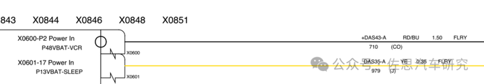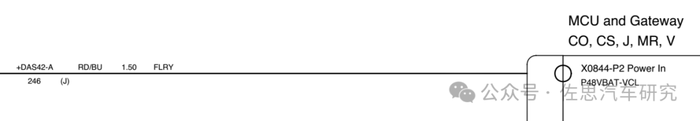 MCU即Infotainment,网关也内置其中,即座舱系统,48V电池供电,左侧为左域控制器,右侧为右域控制器,线面积都只有1.5平方毫米,这个是双路供电。