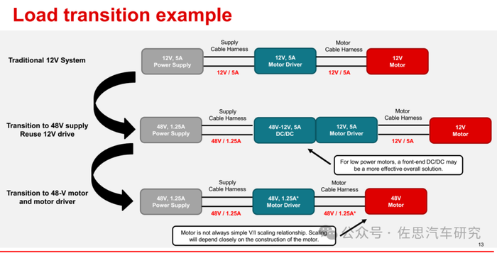 对于部分低功率负载,通过转换成48V减少线束成本和提高效率带来的收益并不明显,相反却增加了不少成本,盐雾、EMI、静电等可靠性测试验证的周期大大增加,因此可以仅将带来较大收益的负载变为48V,其余负载维持12V不变,通过内部电压转换实现驱动。线控底盘领域还要看电机厂家的脸色,12V向48V转变会是一个非常缓慢的过程。