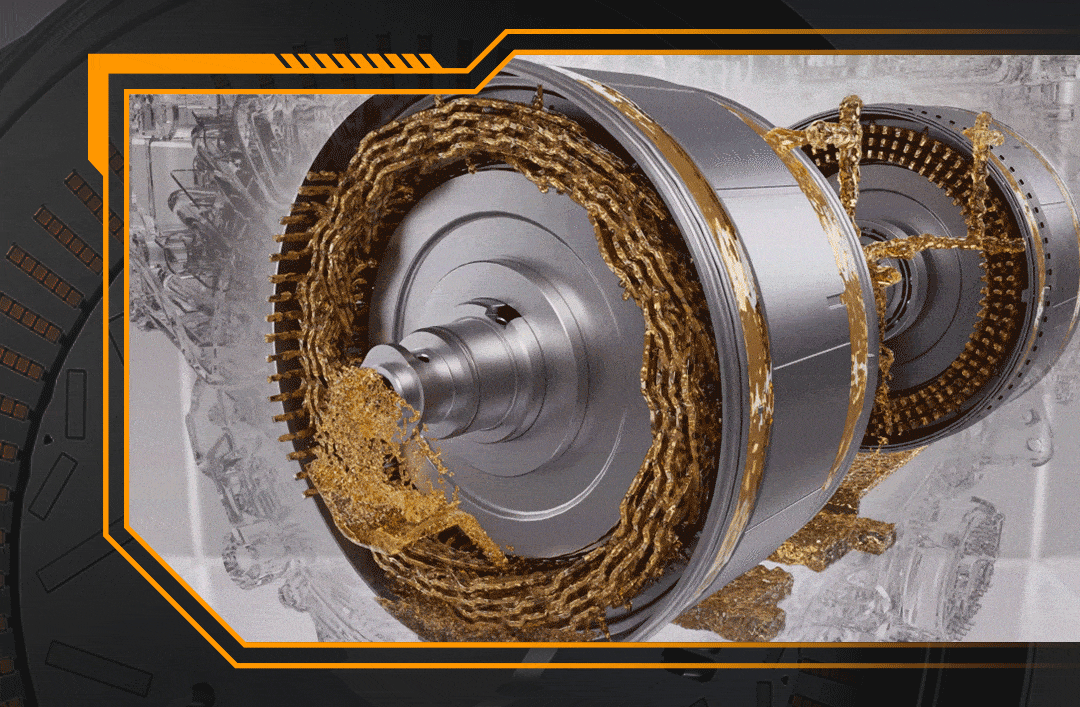 星驱科技全新一代双电机总成配置峰值功率340kW的扁线油冷双电机,轮端峰值扭矩可达6800N·m。采用自研专利360°环流双向全油冷技术,实时智能调整冷却油量,高效散热,助力领克9002.0T探索版实现5秒级零百加速,更以连续20次全功率输出无衰减的卓越表现,赋予用户赛道级驾驶快感。双电机均为8极72槽构型,搭配0.25mm超薄硅钢片,双电机总成综合效率突破89.5%领先行业双电机平均水平1%以上。整车在双核智擎的驱动下,馈电工况下仍能保持低能耗强输出,成就全场景“高速不软、长途不虚、越野不慌”的硬核实力。