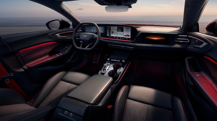 在造型设计方面,奥迪 E5 Sportback高度还原概念车前瞻设计,实现了传承基因与创新元素的精妙平衡:既从初代奥迪TT、RSQ概念车以及RS6等奥迪经典车型汲取灵感,又通过精雕车身线条,创新性地采用一体式科技格栅、集成灯光模块,以及电子外后视镜和隐藏式门把手等设计,降低风阻系数,完美结合空气动力学、空间利用率和人体工学,为用户带来兼具高效能与运动乐趣的驾乘体验。内饰设计以结构化美学为基调,通过木质装饰、间接环境照明和天然材料营造豪华家居感的同时,更以三辐式运动方向盘、集成头枕与侧面支撑的座椅,展现奥迪动感基因。