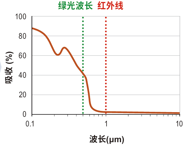 图二:绿光波长的吸收率要比红外线高 8 倍