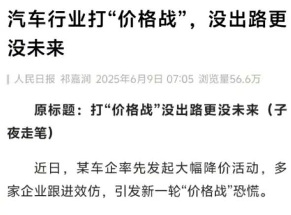 值得一提的是,6月1日、4日、9日,人民日报三次针对汽车行业的价格战进行发文其指出从长远看,打“价格战”这种“内卷式”竞争,没有出路,更没有未来。每个人都期待质优价廉的好汽车,但如果失去“质优”,“价廉”将没有意义。