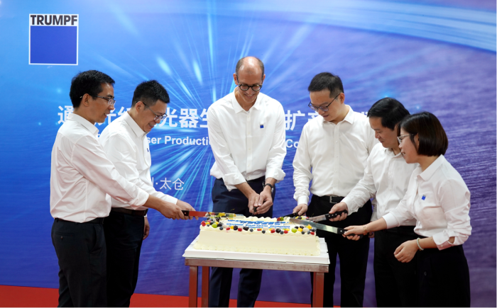 图二:通快中德管理团队与太仓高新区政府代表共切主题蛋糕庆祝项目落成