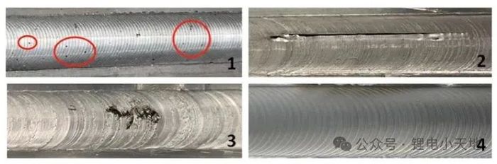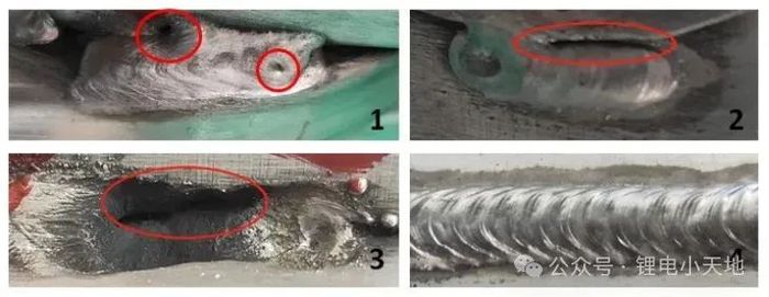 1 气孔缺陷 2 犁沟缺陷 3 表面孔洞缺陷 4 合格焊缝