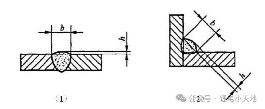 (3)图8所示弧焊焊缝高度评价标准,适用于板材厚度不小于0.5mm的情况。如图8(1)所示,h≤1.5mm+0.15b,且h不大于8mm;如图8(1)所示,h≤1.5mm+0.15b,且h不大于4mm。同时需要校核焊缝高度与安装配合面的关系,避免发生装配干涉。