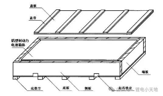 铝型材动力电池箱体的包装运输方案参照GB/T 3199-2007《铝及铝合金加工产品包装、标志、运输、贮存》,推荐使用图11所示的箱式包装结构。运输铝型材动力电池箱体的包装箱、架、托盘应保证规整、清洁、干燥,强度和结构能满足产品的箱体的重量和外形要求,另外还应满足吊车、叉车的作业要求。