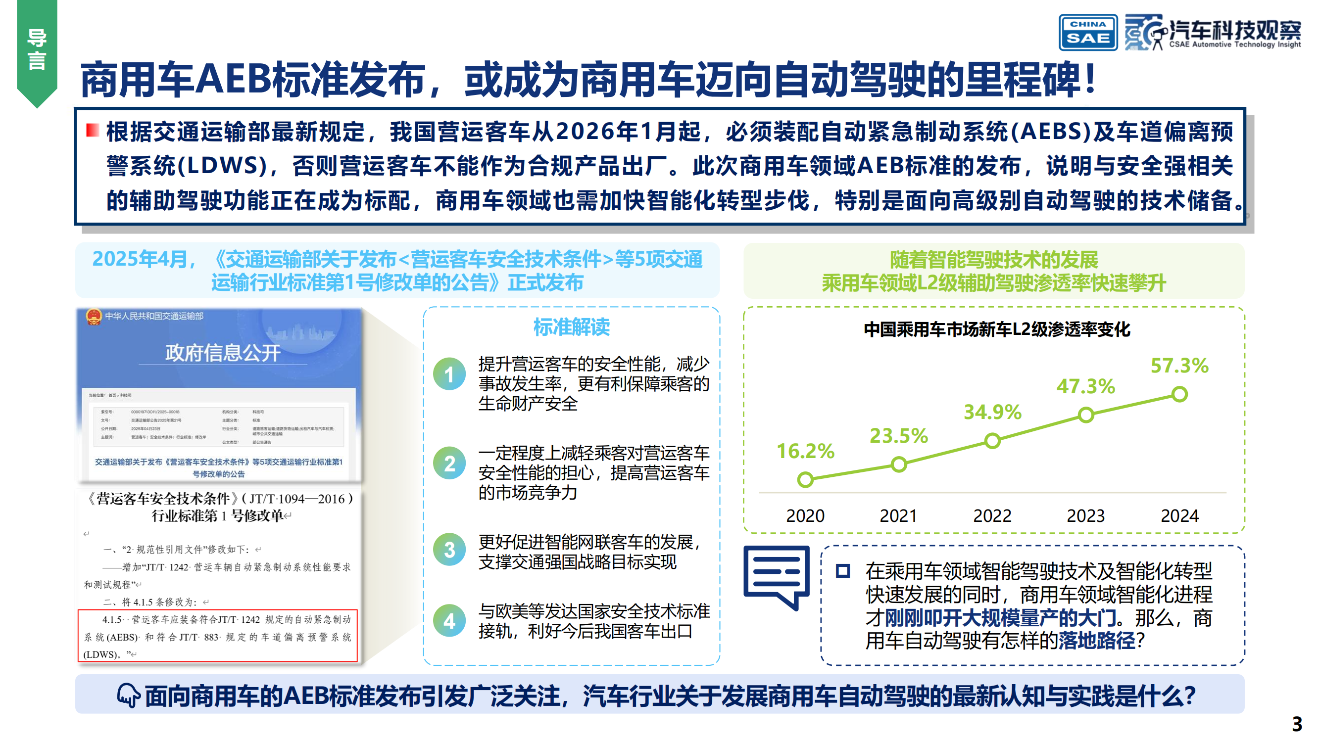 商用车AEB标准发布引关注,汽车行业关于发展商用车自动驾驶的最新认知与实践是什么?