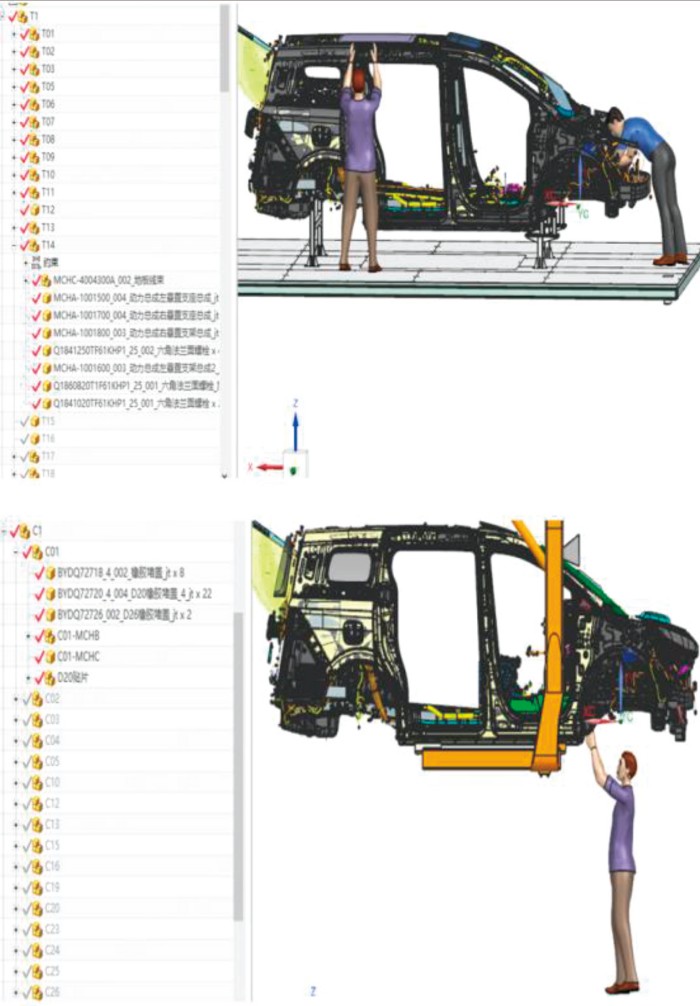 通过数字化装配进行工艺方案设计、校核工艺布置、工艺设备柔性化兼容性分析及工艺设计合理性分析等。