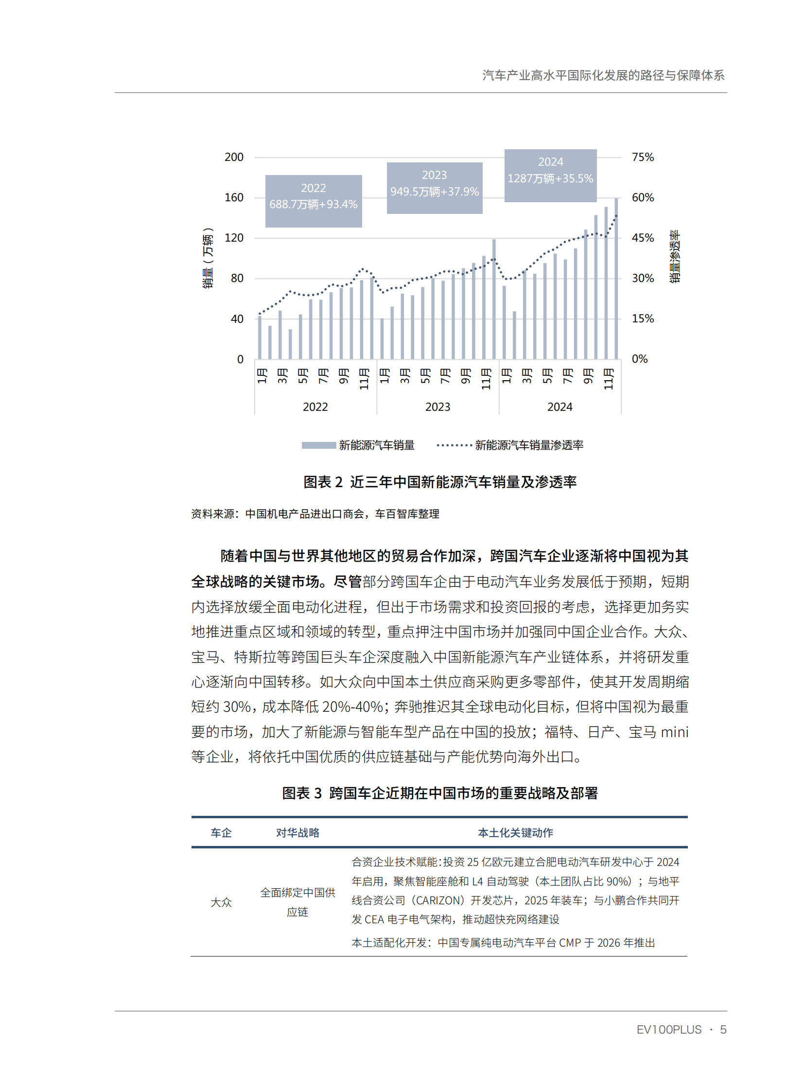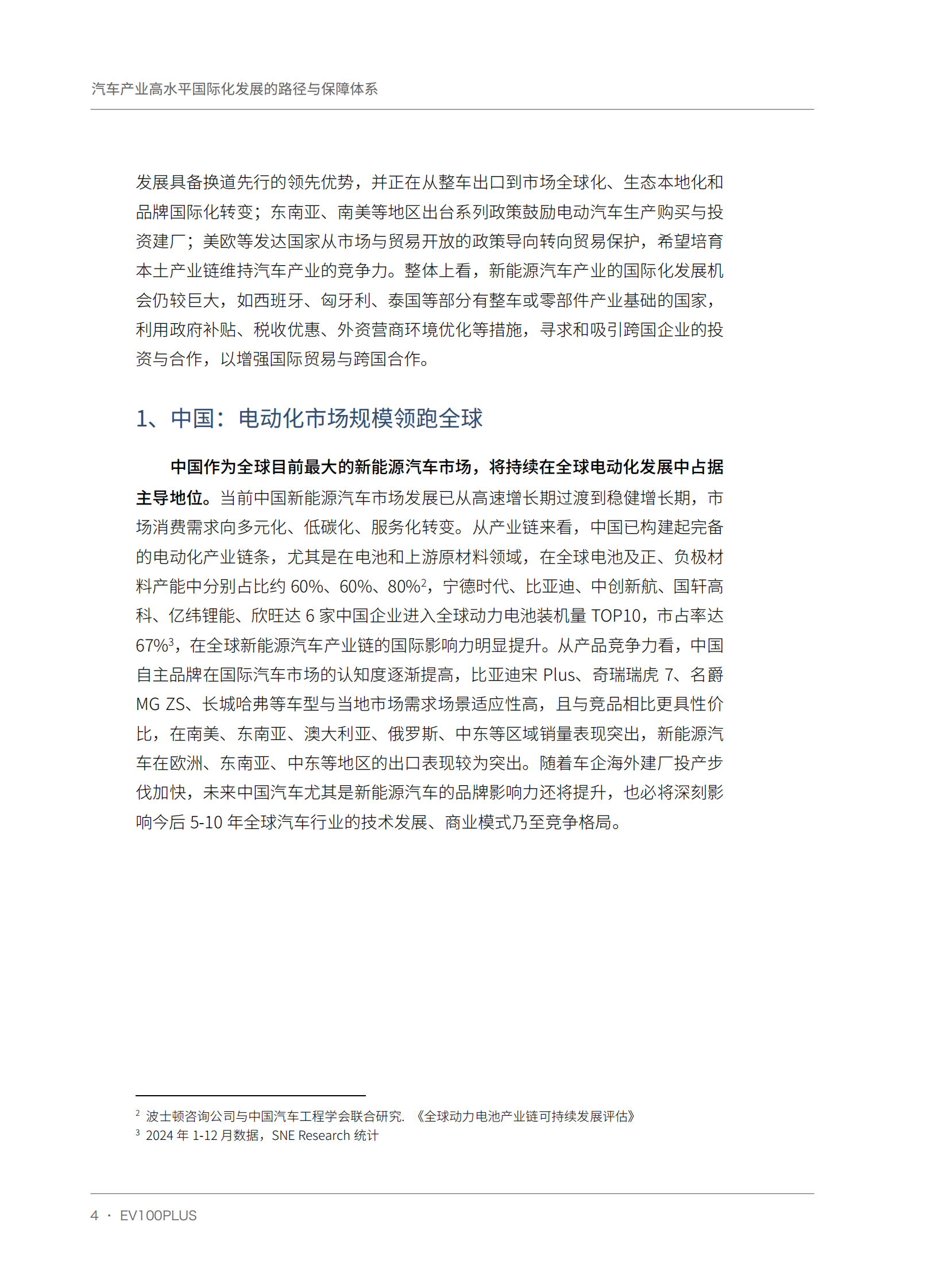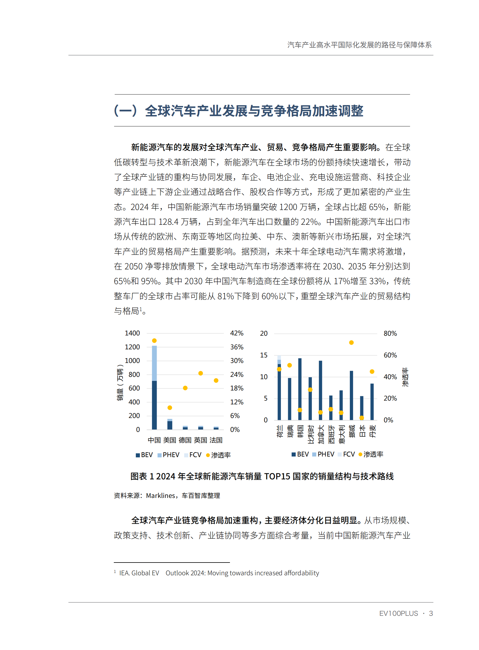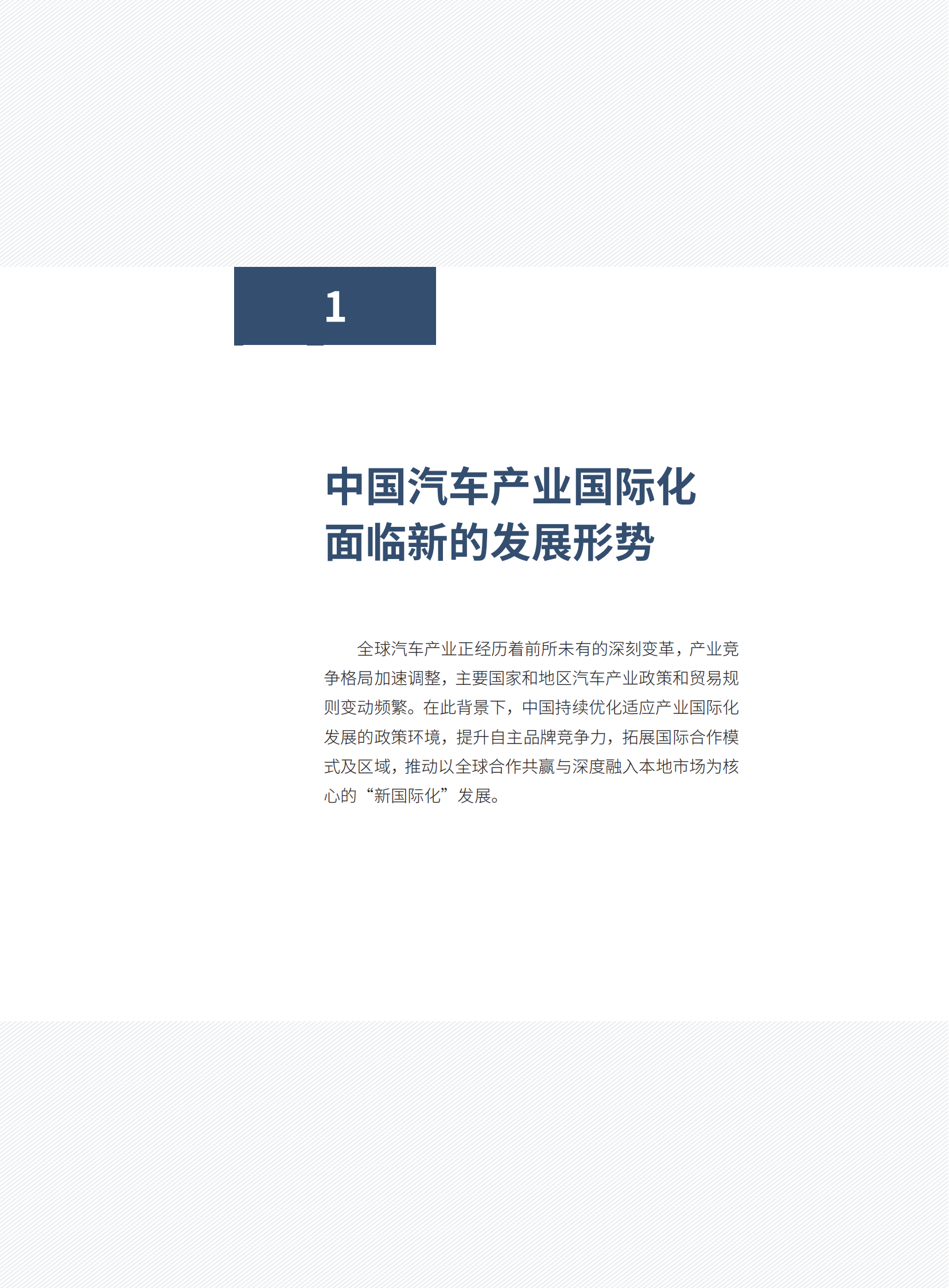 第一部分介绍全球新能源汽车产业发展、贸易与竞争面临的新格局、新形势, 梳理全球重点区域的发展情况,从政策环境、合作生态、海外市场等方面分析我国汽车产业国际化发展的新特点。
