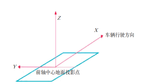 标定间的坐标系以车辆前轴中心的地面投影点为原点,遵循右手坐标系规则。X轴沿车辆行驶方向,Y轴垂直于行驶方向且平行于地面,Z轴则垂直向上。标定间靶标位置和设备的坐标均基于此坐标系,如图1所示。