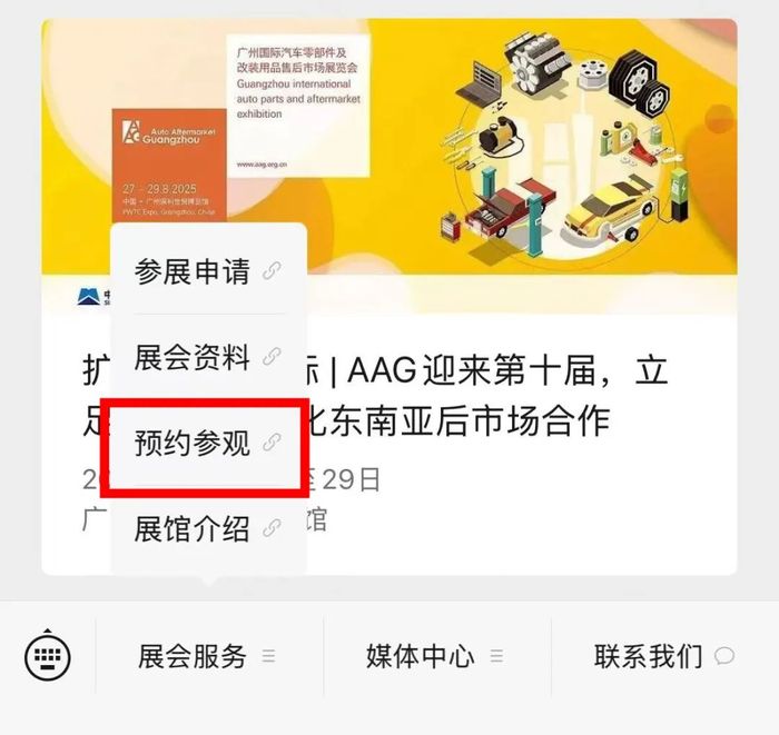 在首页菜单栏点击“预约参观”,跳转至预观众预登记链接,按操作步骤填写信息可完成展会预登记。