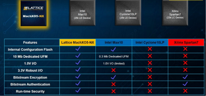 MachXO5-NX FPGA是Nexus™平台的第五款和MachXO系列的第六款器件,“更多逻辑和存储器资源”、“稳定的可编程I/O”、“行业领先的安全性能”和“领先的低功耗和稳定性”,是其作为“增强型安全控制FPGA”的核心竞争力所在。