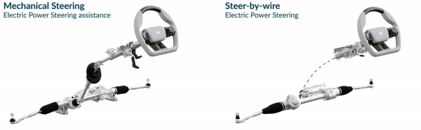 图 4 – 从机械转向系统到线控转向系统的演变(来源: 迈来芯)