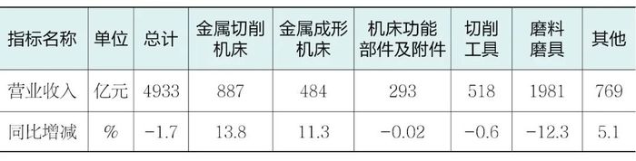 机床工具行业及主要分行业的营业收入情况,详见表1。