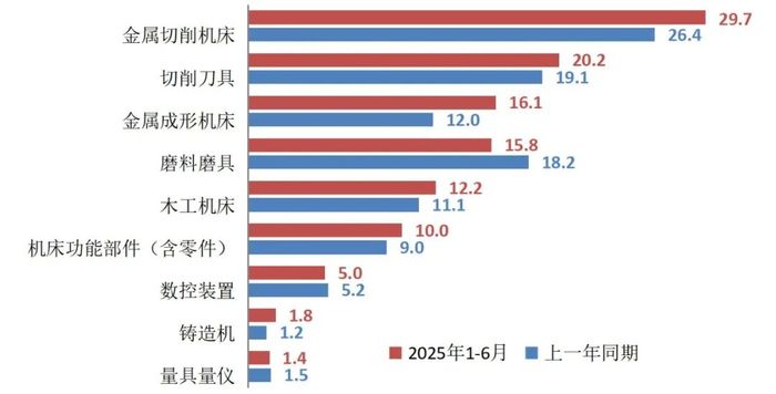 表1 2025年上半年机床工具行业及主要分行业的营业收入情况