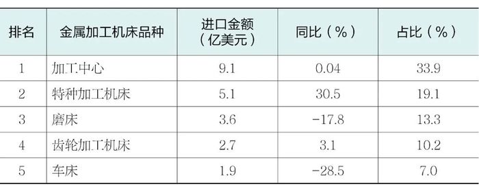 2025年上半年,进口前五位的金属加工机床品种及其进口金额,详见表8。