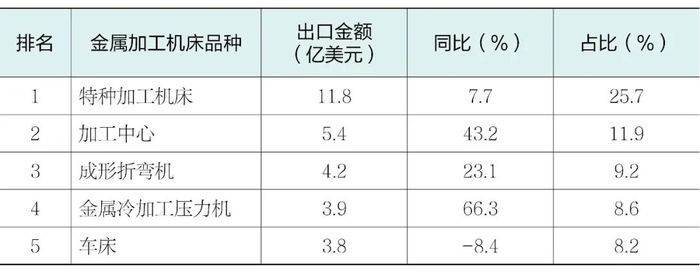 2025年上半年,出口前五位的金属加工机床品种及其出口金额,详见表9。