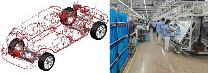 随着汽车行业“新四化”的发展,智能化电器越来越多,线束系统也越来越复杂。传统线束总长度可达2,000~4,000米,重量20~50Kg左右,线束制造工艺也极其繁杂,涉及到的零件产品和工艺多样,普遍自动化率均不到30%。整个线束制造属于劳动密集型产业,急需要轻量化、自动化、智能化的转型升级。