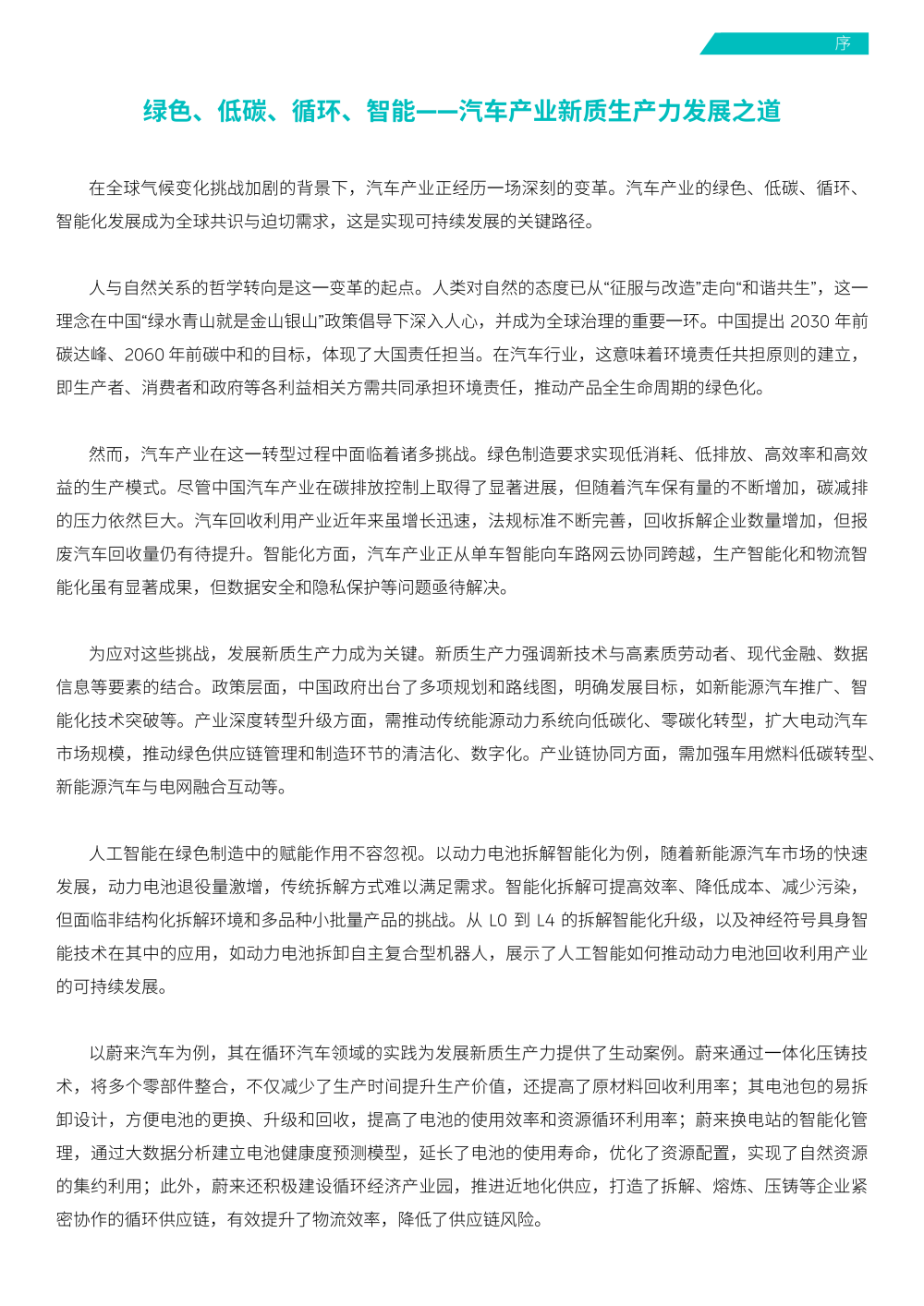 由蔚来、中汽数据、TÜV莱茵集团联合编制的《循环汽车蓝皮书》,是国内首部系统阐述汽车产品全生命周期循环发展的指导性资料。