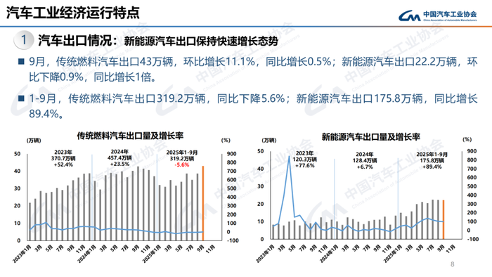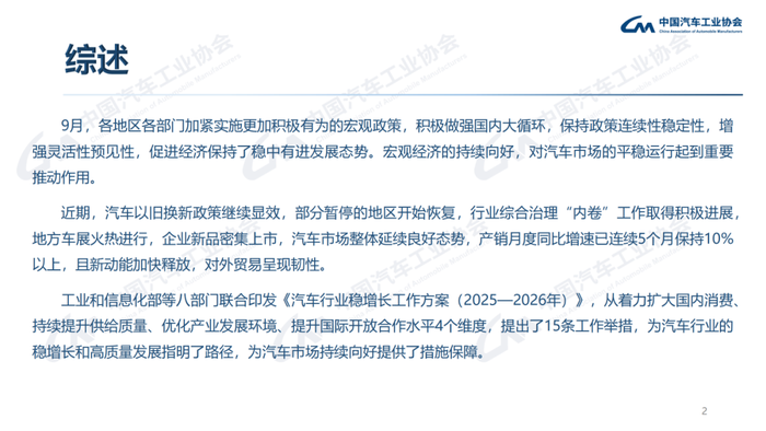 近期,汽车以旧换新政策继续显效,部分暂停的地区开始恢复,行业综合治理“内卷”工作取得积极进展,地方车展火热进行,企业新品密集上市,汽车市场整体延续良好态势,产销月度同比增速已连续5个月保持10%以上,且新动能加快释放,对外贸易呈现韧性。