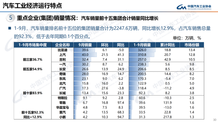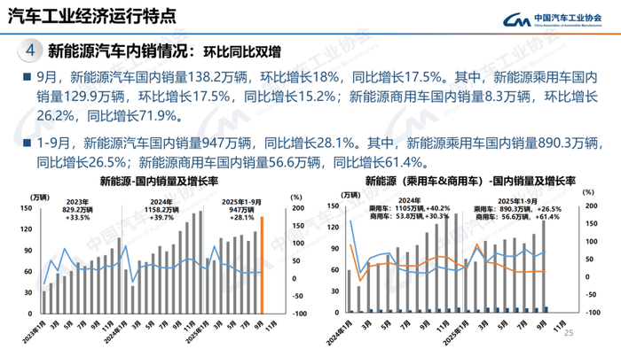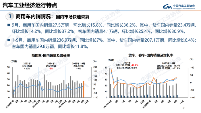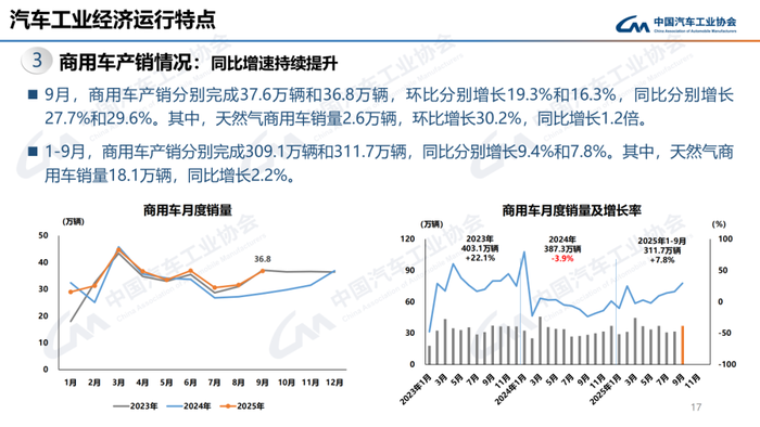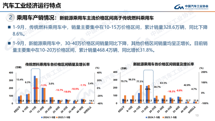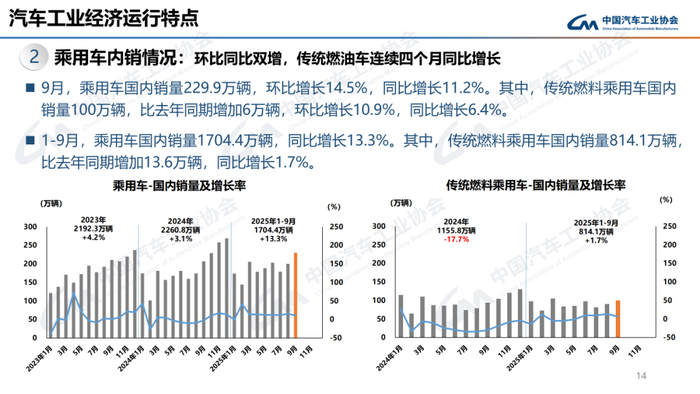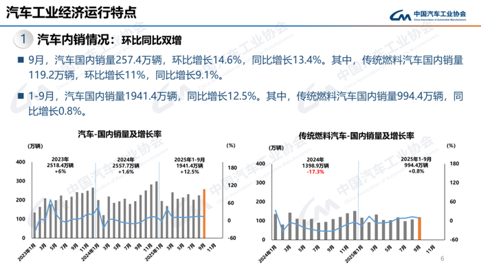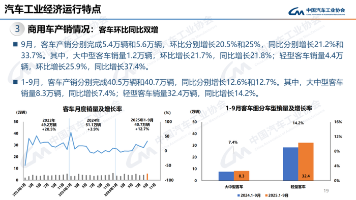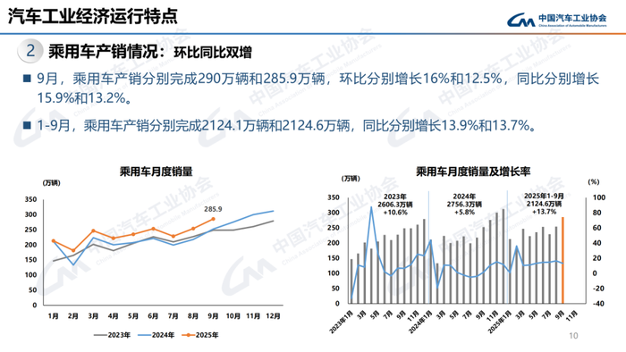 1-9月,汽车产销累计完成2433.3万辆和2436.3万辆,同比分别增长13.3%和12.9%。