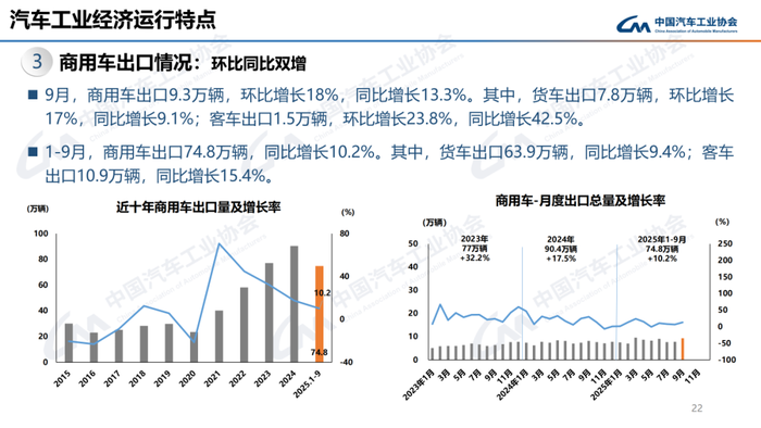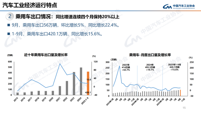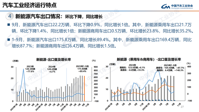 9月,汽车产销分别完成327.6万辆和322.6万辆,环比分别增长16.4%和12.9%,同比分别增长17.1%和14.9%。