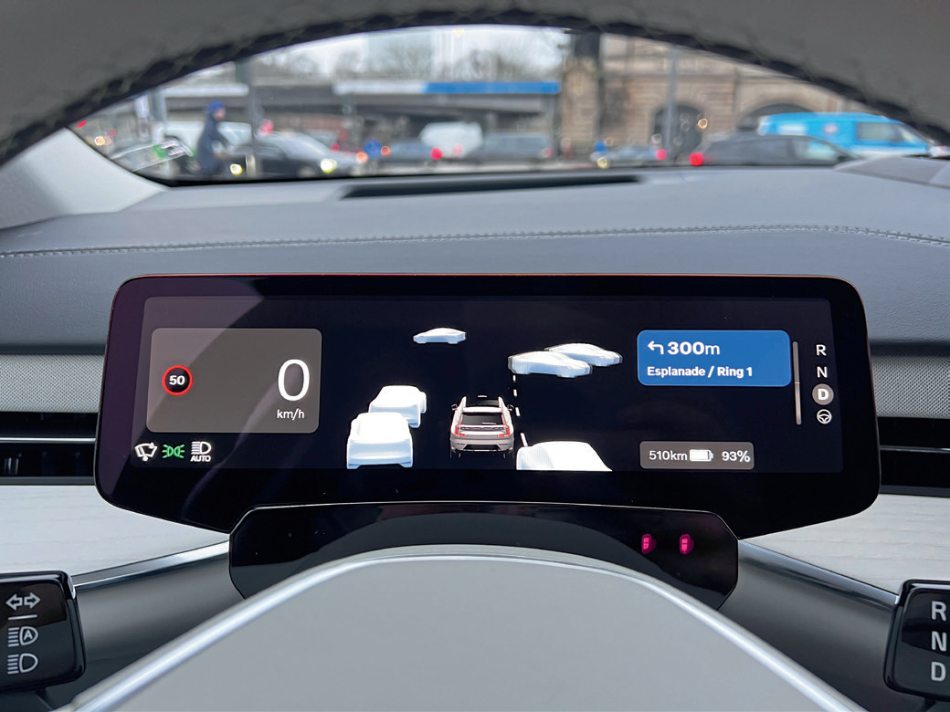 如图4所示,沃尔沃在其大型SUVEX90上同样配置了位于前风窗玻璃上方的激光雷达传感器。但目前该激光传感器仅提供数据采集。按计划,本年度将通过OTA更新释放新的辅助驾驶功能。关于具体功能范畴及对应分级,沃尔沃新闻发言人在汉堡试驾活动中未予透露。
