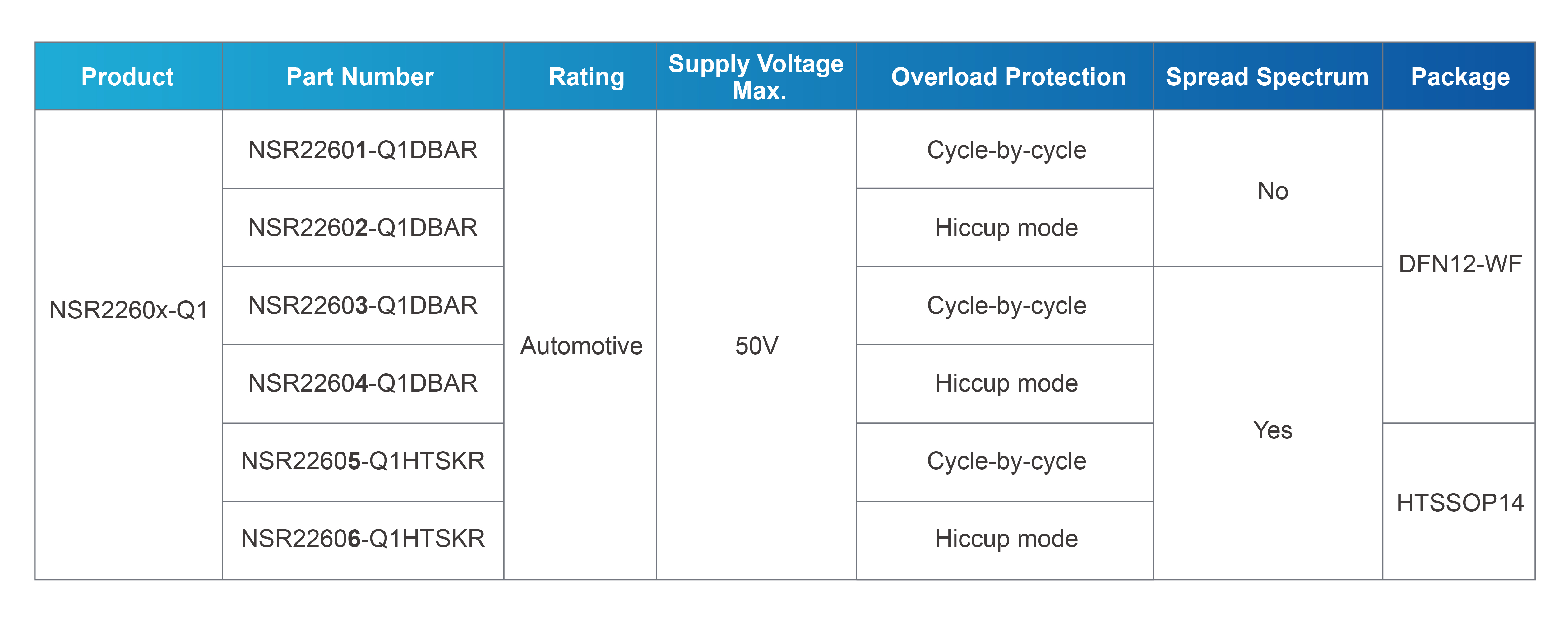 NSR2260x-Q1系列提供两种封装选项,兼顾高功率密度设计与散热性能: