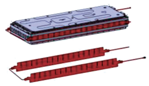 圆柱形电池的特点是单体尺寸较小,通常成组使用,表面积相对较小,热传导路径较短。这种电池一般可选用加热膜技术和液体加热技术。加热膜技术在电池组外围包裹加热膜,利用其柔性特点贴合圆柱形表面,其加热均匀,安装方便;液体加热是在电池组外围设计液体流道,通过冷却液循环加热,其加热效率高。