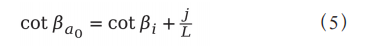 对于双后驱动桥的车型,低速转向时,内轮实际转角 β i 需大于外轮转角,使四个车轮轴线延长线交于后轴延长线上的同一转向中心点,此时外轮转角即“理 论外转角”β(a0 ),两者关系如公式(5)所示: