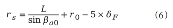 式中,rs 是转弯半径(车辆最小转弯路径的半径,单位mm);r0 是主销偏移距(主销轴线与车轮中心面偏移量, 单位 mm);δF 是前轮转向角(指转向节臂设计角度)。
