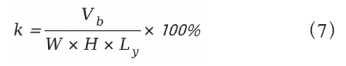 式中,Vb 为电池包体积;单位是 m³ 为包含单体电池、 框架和热管理系统的实际占用空间;W×H×Ly 为底盘 可用空间,单位是 m³ ;H 为车架有效安装宽度,单位 单位是 m ;H 为底盘有效安装高度,单位是 m ;Ly 为 有效轴距单位是 m。Ly 为电池包有效占用长度。