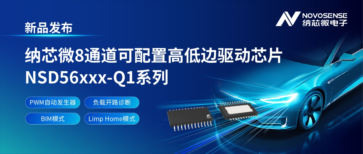 纳芯微近日宣布正式推出车规级8通道可配高低边驱动系列芯片——NSD56080、NSD56602、NSD56620与NSD56242,工作电压范围覆盖4.5V~28V(输出内部钳位39V),每通道驱动电流330mA(所有通道ON),适合驱动汽车电子的继电器、LED、灯泡及电机等各类型感性容性负载。