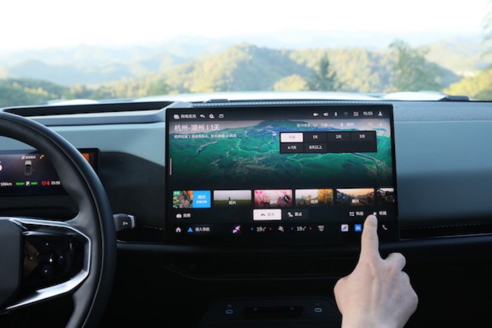 基于高达12000nits的显示系统设计标准,这块屏幕即便面对青藏高原的炽烈阳光或雪地行驶的强烈反光,内容依然力求清晰可辨,致力于告别"抬手遮光看屏幕"的尴尬。