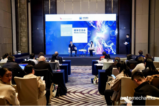 开幕当天的媒体沟通会上,法兰克福展览(香港)有限公司总经理周劭阑、中国机械国际合作股份有限公司董事长张力、法兰克福展览(上海)有限公司总经理于光、中国机械国际合作股份有限公司总经理孙润海等主办方管理层共同出席了会议,并就媒体关心的问题进行了互动交流。